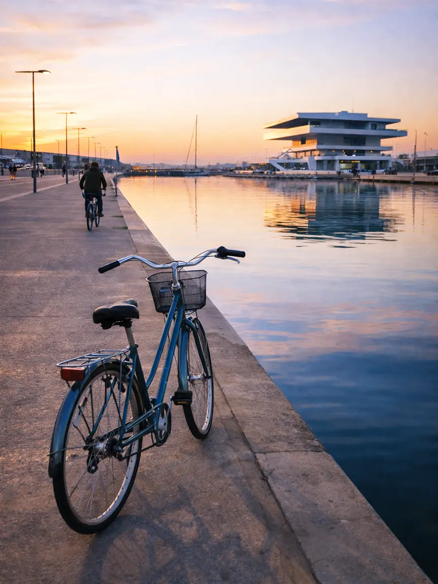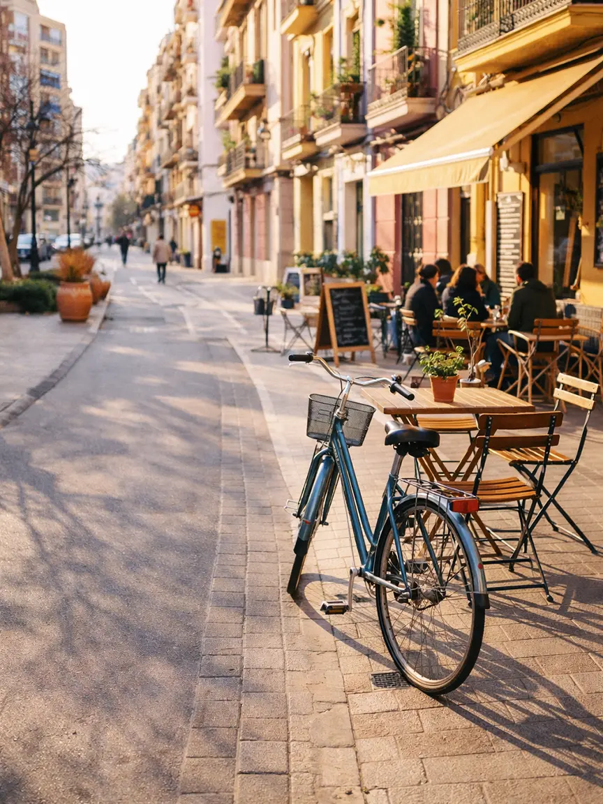 And because bikes make everything accessible, the day becomes fluid: a morning ride through the Turia, a coffee in Ruzafa, a loop past the Marina, a quiet moment at the beach, a sunset near the Arts and Sciences. All without stress or effort.